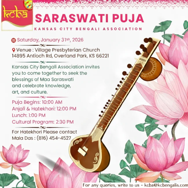 With great joy and devotion, the Kansas City Bengali Association (KCBA) warmly invites you and your loved ones to celebrate