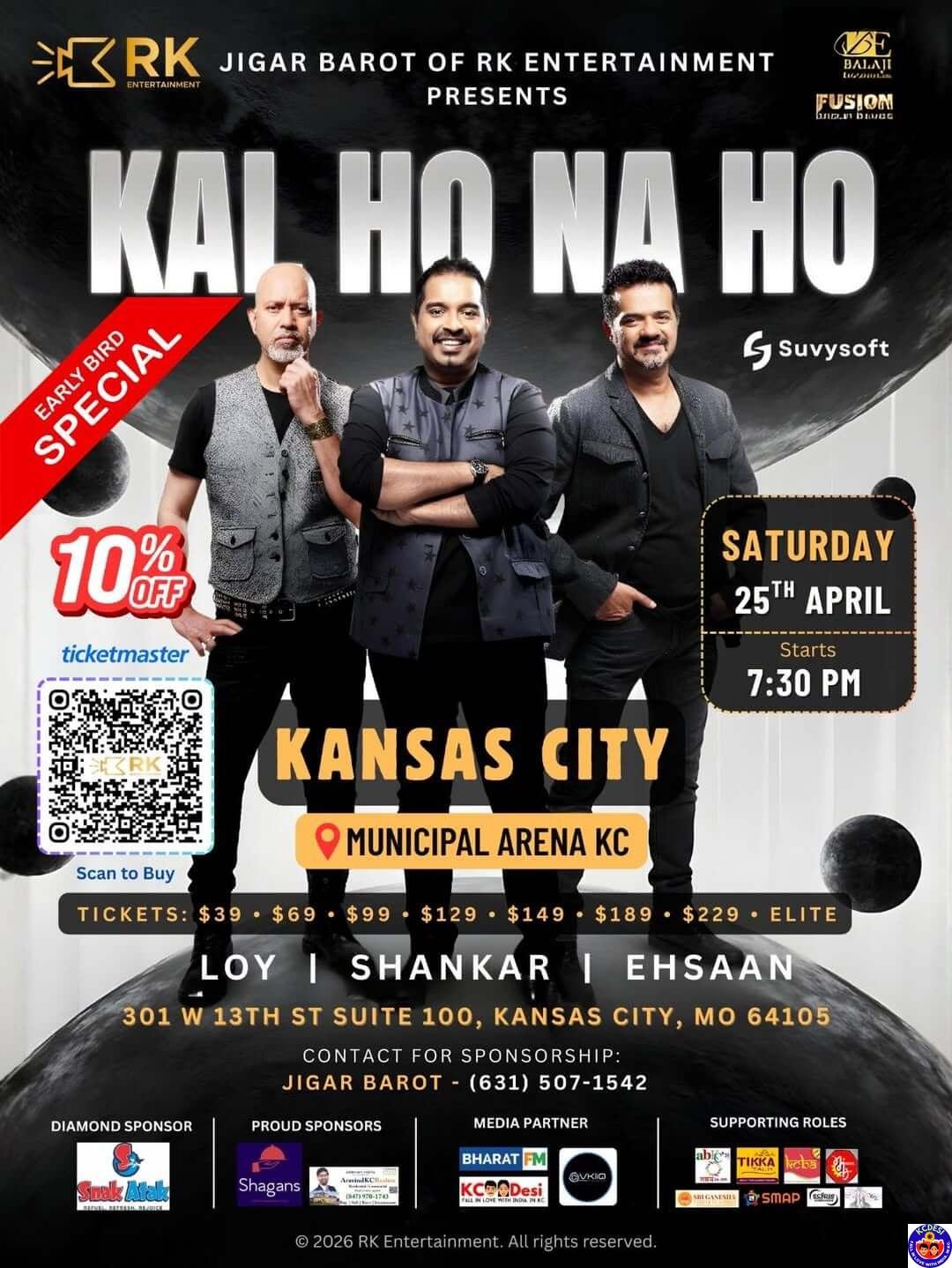 One of Bollywood’s most iconic composer trios is coming to Kansas City — and it’s going to be a night to remember! Shankar-Ehsaan-Loy will perform live at the Municipal Auditorium, Kansas City, MO on Saturday, April 25, 2026. Doors open at 6:30 PM and the show kicks off at 7:30…
