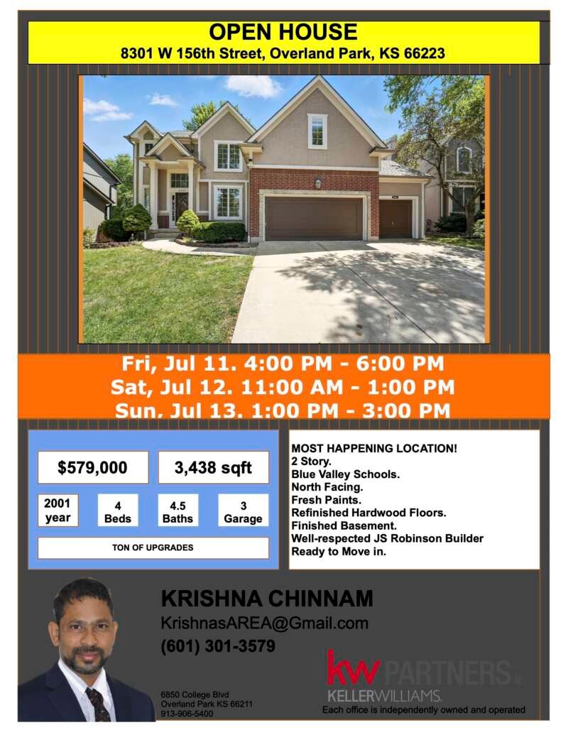 07/11-07/14 – Charming Overland Park Home in Prime Location – 8301 W 156th St