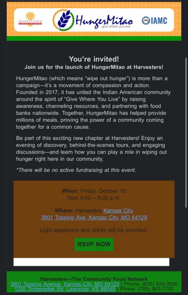 π Exciting News! Join us for the HungerMitao Kansas City Launch, hosted by Harvesters Food Bank!