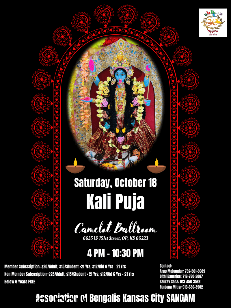 Kali Puja & Pushpanjali: 5 PM – 6:30 PM