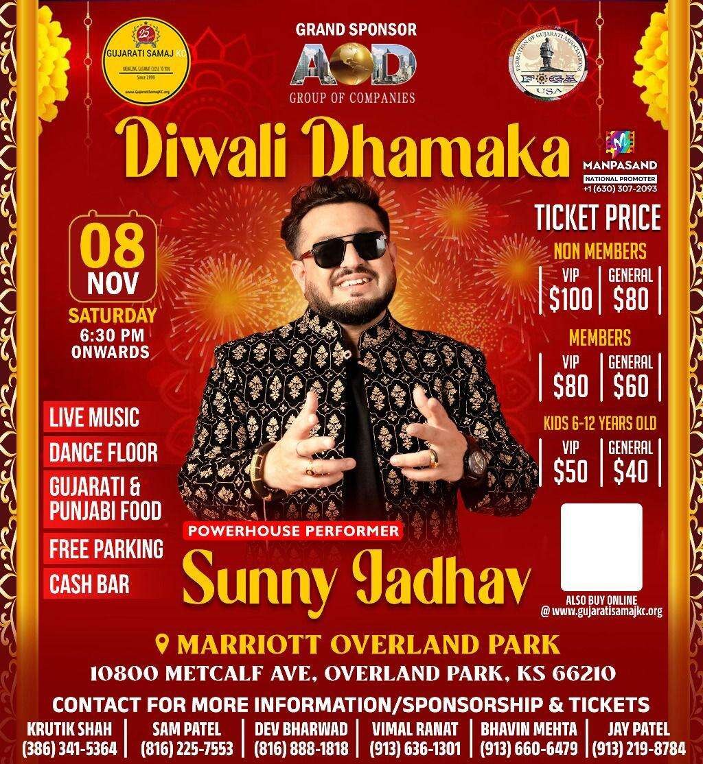 Tickets are live now for the biggest Bollywood Diwali Night in the town!! GSKC Diwali Dinner 2025 November 8th 2025: Doors open @6-30 PM Diwali Dhamaka with Sunny Jadhav (well known Bollywood singer) Live Music, Dance Floor, Free Food, Free Parking Venue: MARRIOTT Overland Park: 10800 Metcalf AVE, Overland Park, KS GSKC member tickets link: https://www.gujaratisamajkc.org/ GSKC non member tickets…