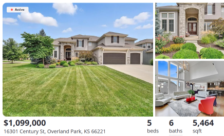 Exquisite One-Owner Home in Century Farms, Overland Park Address: 16301 Century Street, Overland Park, KS 66221 https://www.zillow.com/homedetails/16301-Century-St-Overland-Park-KS-66221/247400350_zpid/ List Price: $1,099,000 Property Highlights Bedrooms & Baths: 5 Bedrooms, 5.5 to 6 Bathrooms Size: Approximately 5,464 square feet Lot: Generous, beautifully landscaped walk-out lot Garage: 4-car garage with epoxy-finished floors – and equipped with a Tesla charger Elegant, Entertainer’s Layout Grand Features:…